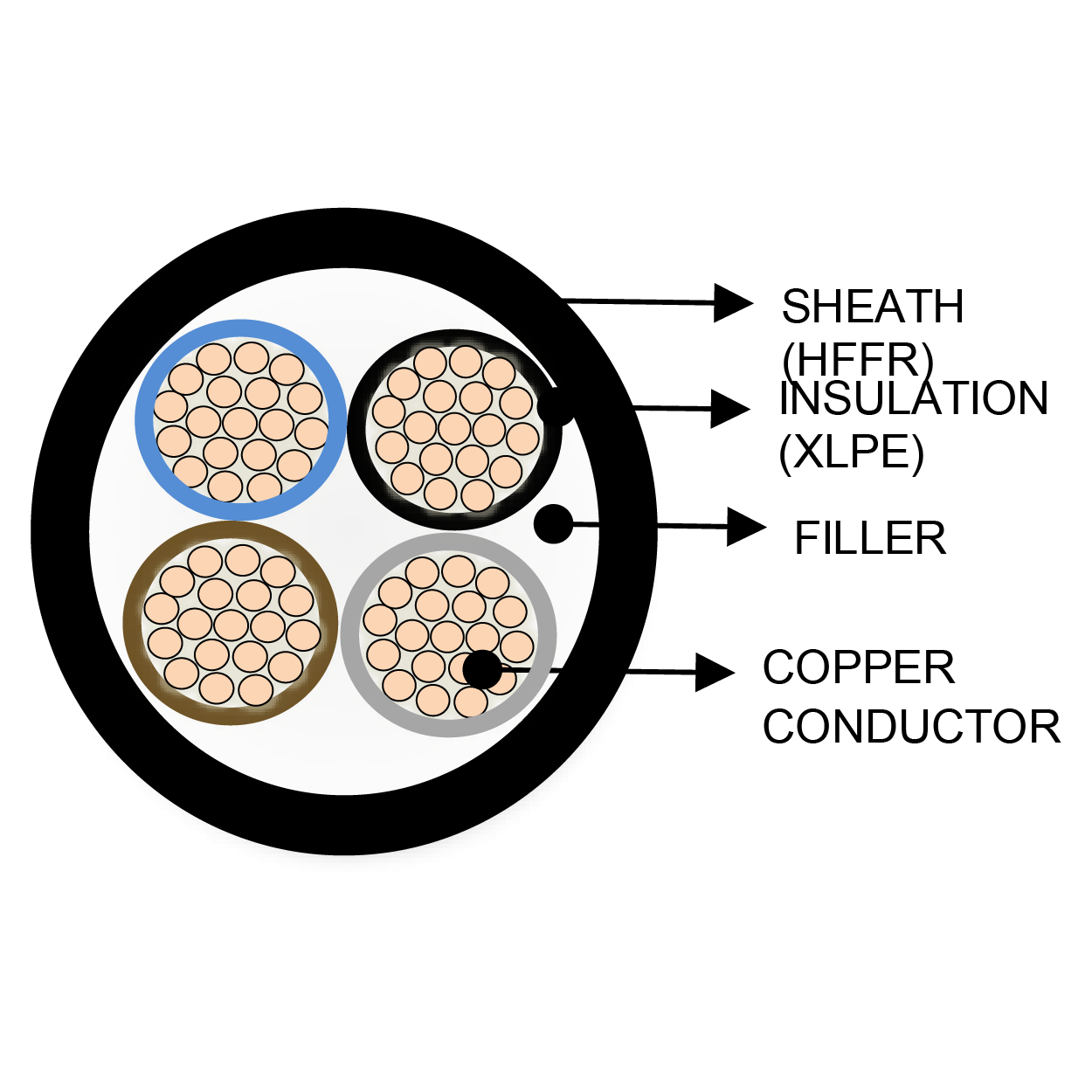 Multi Cores / Copper Conductor / XLPE insulated / Filler / HFFR Sheath