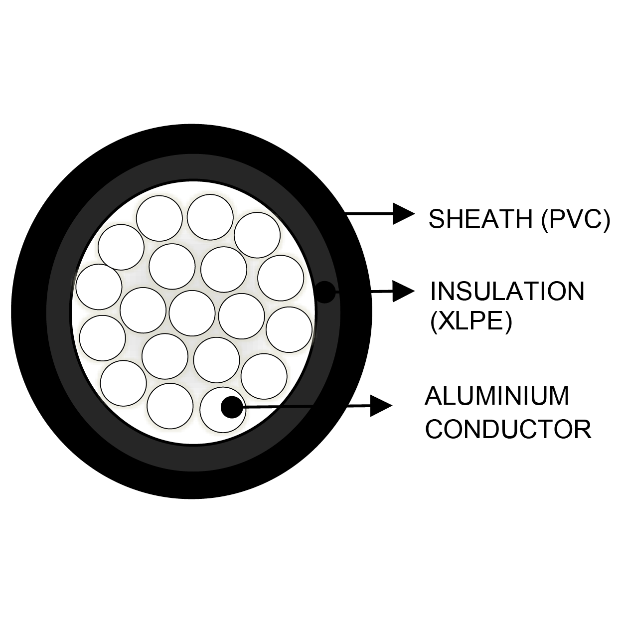 | Layers | One Core / Aluminum Conductor / XLPE insulated / PVC Sheath |