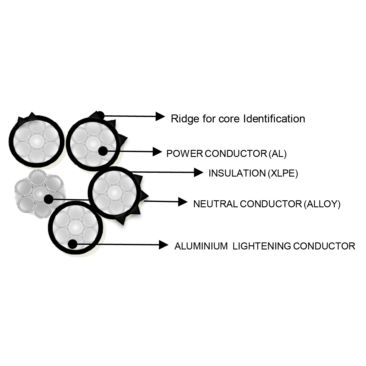 | Layers | Multiwire Aluminium Conductor / XLPE insulated / Suppoting Neutral Conductor |