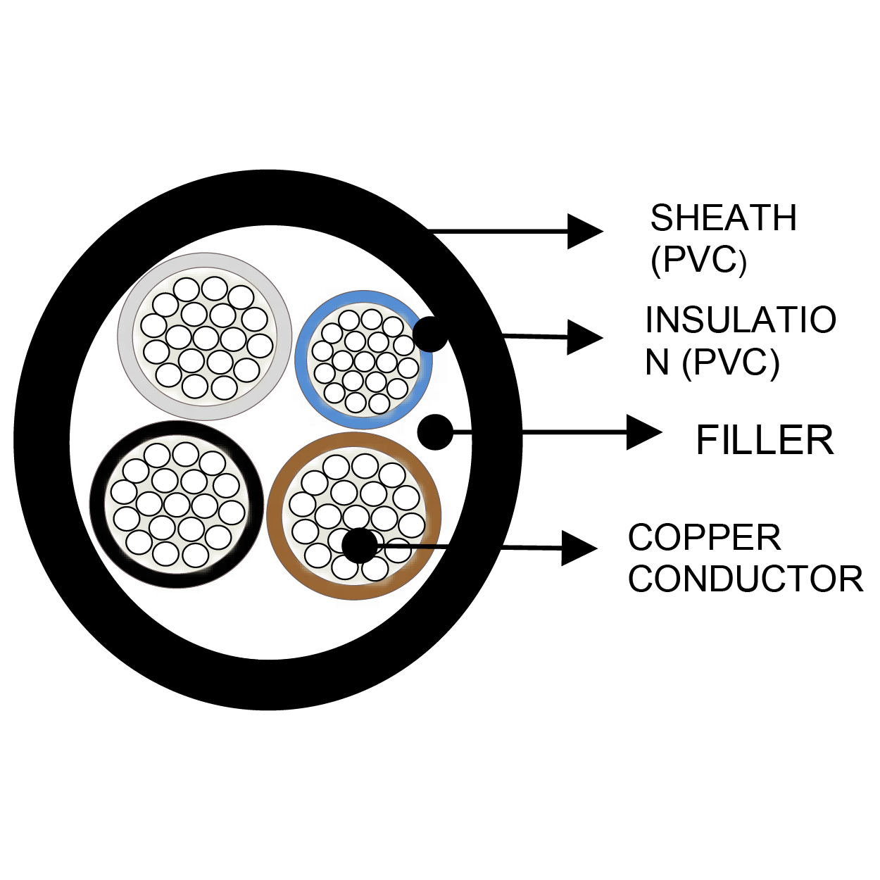 | Layers | Multi Core / Copper Conductor / PVC insulated / Filler / PVC Sheath |